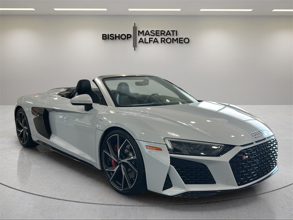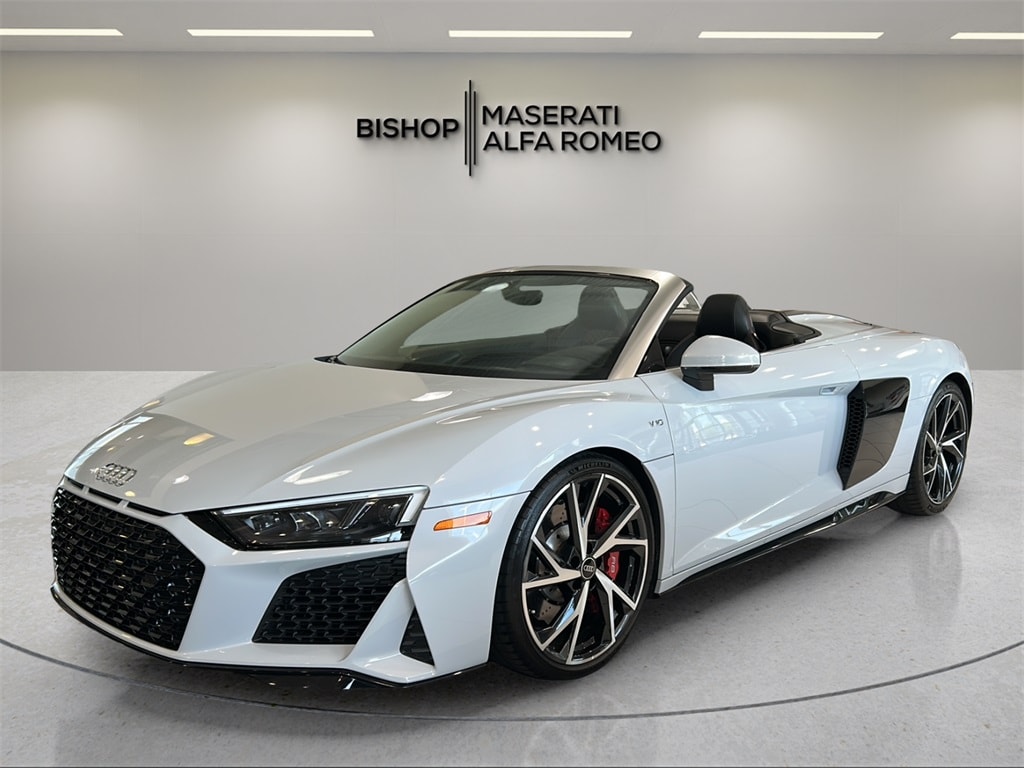 ONLY 1200 MILES & 1- OWNER, SAVE THOUSANDS FROM MSRP, Black Leather, Audi Drive Select w/Performance Mode, Carbon Interior Package, Diamond Stitch Full Leather Package, Diamond Stitched Seat Trim, Extended Leather Package, Full Leather Package, Illuminated Door Sill Inlays, Navigation system: MMI Navigation plus, Premium Package, Sport Exhaust Package, Sport Exhaust System w/Black Exhaust Tips, Sport Steering Wheel w/4 Satellite Buttons. Gray Metallic 2023 Audi R8 V10 performance RWD 7-Speed Automatic S tronic 5.2L V10 FSI DOHC 40V LEV3-LEV160 562hp