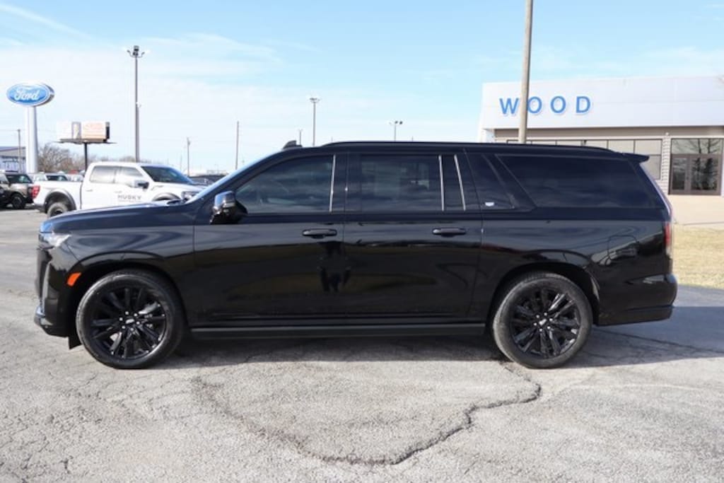 Black Raven 2022 Cadillac Escalade ESV Sport 4WD 10-Speed Automatic with Overdrive 6.2L V8 4WD, 16.9" Diagonal OLED Infotainment Screen, 3.23 Axle Ratio, 8-Way Power Driver Seat Adjuster, 8-Way Power Front Passenger Seat Adjuster, Adaptive Cruise Control, Air Conditioning, Air Ride Adaptive Suspension, AKG Studio 19-Speaker Audio System, Apple CarPlay/Android Auto, Auto High-beam Headlights, Auto tilt-away steering wheel, Auto-dimming door mirrors, Automatic Seat Belt Tightening, Automatic Stop/Start, Automatic temperature control, Body-Color Door Handles, Brake assist, Bumpers: body-color, Compass, Delay-off headlights, Door Lock & Latch Shields, Driver door bin, Driver vanity mirror, Electronic Limited-Slip Differential, Electronic Stability Control, Enhanced Automatic Emergency Braking, Enhanced Automatic Parking Assist, Four wheel independent suspension, Front Bucket Seats, Front Center Armrest w/Storage, Front dual zone A/C, Front License Plate Bracket, Front reading lights, Fully automatic headlights, Garage door transmitter, Glass Breakage Sensor, HD Radio, Heads-Up Display, Heated & Ventilated Driver & Front Passenger Seats, Heated door mirrors, Heated Driver & Front Passenger Seats, Heated front seats, Heated rear seats, Heated steering wheel, Hitch Guidance w/Hitch View, Illuminated entry, Illuminating Front & Rear Sill Plates, Integrated Trailer Brake Controller, Leather Seating Surfaces w/Precision Perf Inserts, Leather steering wheel, Low tire pressure warning, Magnetic Ride Control Suspension, Memory seat, Navigation System, Outside temperature display, Overhead console, Panic alarm, Passenger door bin, Passenger vanity mirror, Power door mirrors, Power driver seat, Power Liftgate, Power Panoramic Tilt-Sliding Sunroof, Power passenger seat, Power steering, Power windows, Power-Retractable Assist Steps, Preferred Equipment Group 1SC, Radio: AM/FM/SiriusXM w/Navigation, Rain sensing wipers, Rear air conditioning, Rear Camera Mirror, Rear Camera Mirror Washer, Rear Cross Traffic Alert, Rear reading lights, Rear window defroster, Rear window wiper, Reconfigurable Full-Color Head-Up Display, Remote keyless entry, Reverse Automatic Braking, Roof rack: rails only, Running Board Assist Steps, Security system, SiriusXM w/360L, Smart Trailer Integration Indicator, Soft Closing Front & Rear Doors, Speed control, Split folding rear seat, Spoiler, Start/Stop System Disable Button, Steering wheel memory, Steering wheel mounted audio controls, Super Cruise, Tachometer, Teen Driver, Telescoping steering wheel, Theft-Deterrent Alarm System, Tilt steering wheel, Touring Package, Traction control, Trailer Side Blind Zone Alert, Trip computer, Turn signal indicator mirrors, Variably intermittent wipers, Vehicle Inclination Sensor, Vehicle Interior Movement Sensor, Ventilated front seats, Voltmeter, Wheels: 22" 12-Spoke Polished Alloy, Wireless Apple CarPlay/Wireless Android Auto.