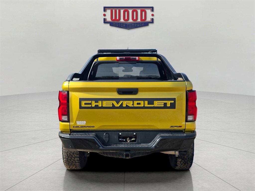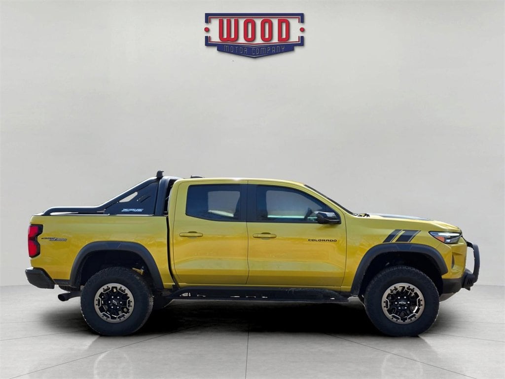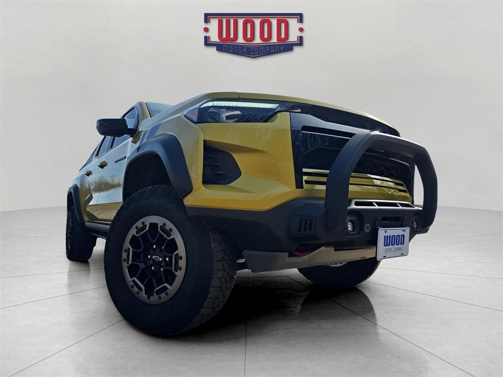 CARFAX One-Owner. Clean CARFAX. Colorado ZR2, 4D Crew Cab, 2.7L Turbo, 8-Speed Automatic, 4WD, Nitro Yellow Metallic, Jet Black/Artemis w/Perforated Leather-Appointed Seat Trim, 4-Way Manual Passenger Seat Adjuster, 40 Off-Road Roof Lightbar, 6-Speaker Audio System Feature, 8-Way Power Driver Seat Adjuster, Adaptive Cruise Control, Auto High-beam Headlights, Automatic Emergency Braking, Automatic temperature control, Bed-Mounted Sport Bar w/ZR2 Sail Panel, Black Nameplates (LPO), Blind Zone Steering Assist, Bodyside Decal Package, Chevy Safety Assist, Desert Boss Special Edition, Driver & Front Passenger Ventilated Seats, Driver Memory Settings, Driver Seatback Map Pocket, Electronic Automatic Cruise Control, Electronic Stability Control, Following Distance Indicator, Forward Collision Alert, Front Bucket Seats, Front dual zone A/C, Front Fender Decal Package (LPO), Front fog lights, Front Pedestrian & Bicyclist Braking, HD Surround Vision, Heated Driver & Front Passenger Seats, Heated front seats, Heated Steering Wheel, IntelliBeam Automatic High Beam On/Off, Lane Keep Assist w/Lane Departure Warning, Navigation System, Off-Road Front Bumper w/Safari Bar, Perforated Leather-Appointed Seat Trim, Power Distribution Box, Power driver seat, Power windows, Preferred Equipment Group 4ZR, Radio: 11.3 Diagonal Advanced Color LCD Display, Rear Center Armrest, Rear Cross Traffic Braking, Rear Park Assist, Rear Pedestrian Alert, Rear window defroster, Rear-Window Electric Defogger, Remote keyless entry, Safety Package, SiriusXM Radio, Speed control, Steering Wheel Mounted Audio Controls, Steering wheel mounted audio controls, Tailgate Decal Package (LPO), Technology Package, Telescoping steering wheel, Tilt steering wheel, Traction control, Underbody Cameras, Wheels: 17 Beadlock Capable (LPO), Wheels: 17 x 8 Steel Transit, Wireless Charging, Wireless Phone Projection, ZR2 Convenience Package III, ZR2 Off-Road Package. Nitro Yellow Metallic 2023 Chevrolet Colorado ZR2 4WD 8-Speed Automatic 2.7L Turbo