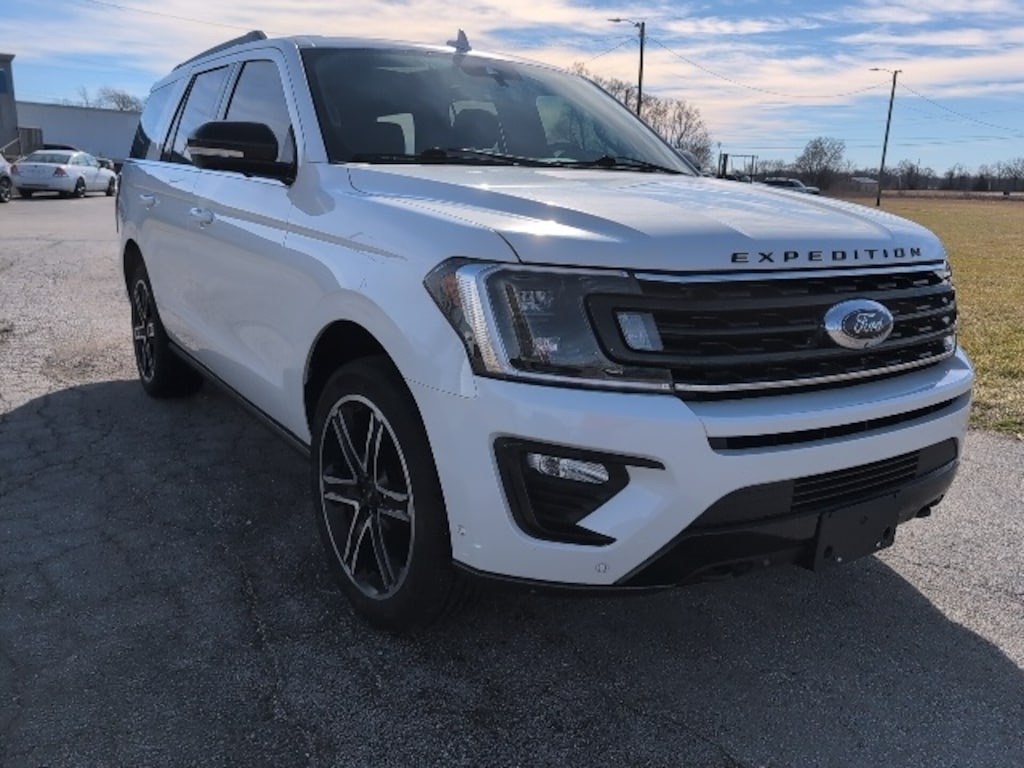 White 2021 Ford Expedition Limited 4WD 10-Speed Automatic EcoBoost 3.5L V6 GTDi DOHC 24V Twin Turbocharged 4WD, 3.31 Axle Ratio, 360-Degree Camera w/Split View, Adjustable pedals, Air Conditioning, Auto High-beam Headlights, Auto-dimming door mirrors, Auto-dimming Rear-View mirror, Automatic temperature control, Black Roof Rack Side Rails, Black Roof Rail Crossbars, Body Color Door Handles, Brake assist, Bumpers: body-color, Compass, Convenience Package, Delay-off headlights, Driver door bin, Driver vanity mirror, Electronic Stability Control, Enhanced Active Park Assist System, Equipment Group 303A Stealth Package, Exterior Parking Camera Rear, Front Center Armrest, Front dual zone A/C, Front fog lights, Front reading lights, Fully automatic headlights, Garage door transmitter, Gloss Black Five-Bar Grille, Gloss Black Painted Rear Bumper Skid Plate, Gloss Black Power Deployable Running Boards, Gloss Black Sideview Mirror Caps, Gloss Black Tailgate Applique, Heated & Ventilated Leather Front Captain's Chairs, Heated door mirrors, Heated front seats, Heated rear seats, Heated steering wheel, Heated/Ventilated Lthr Front Captain's Chairs (A), Heavy-Duty Trailer Tow Package, Illuminated entry, Integrated Trailer Brake Controller, Leather steering wheel, LED Fog Lamps w/Gloss Black Bezels, LED Headlamps w/Gloss Black Housing, LED Taillamp w/Gloss Black Housing, Memory seat, Navigation System, Outside temperature display, Overhead console, Panic alarm, Panoramic Vista Roof, Passenger vanity mirror, Pedal memory, Power door mirrors, Power driver seat, Power Liftgate, Power passenger seat, Power steering, Power windows, Pro Trailer Backup Assist, Rain sensing wipers, Rear air conditioning, Rear reading lights, Rear window defroster, Rear window wiper, Reclining 3rd row seat, Remote keyless entry, Roof rack: rails only, Security system, Speed control, Speed-Sensitive Wipers, Split folding rear seat, Stealth Edition Package, Steering wheel memory, Steering wheel mounted audio controls, Tachometer, Telescoping steering wheel, Tilt steering wheel, Trip computer, Turn signal indicator mirrors, Variably intermittent wipers, Ventilated front seats, Voltmeter, Wheels: 20" Premium Dark Tarnish-Painted, Wheels: 22" Premium Black-Painted Aluminum.