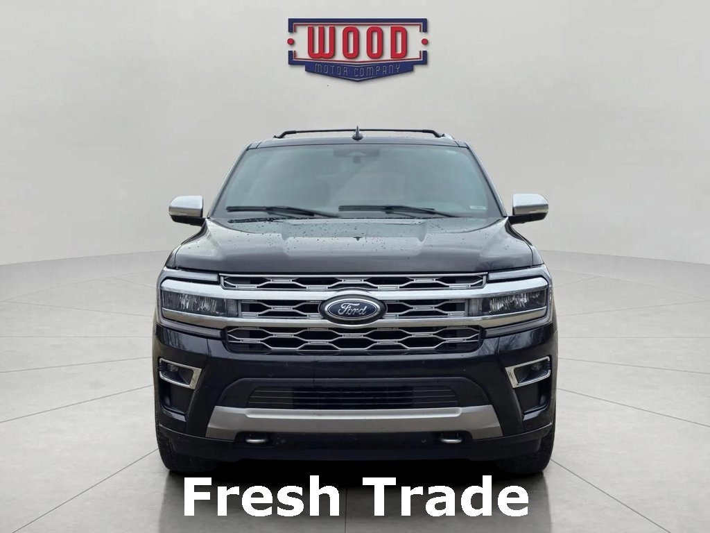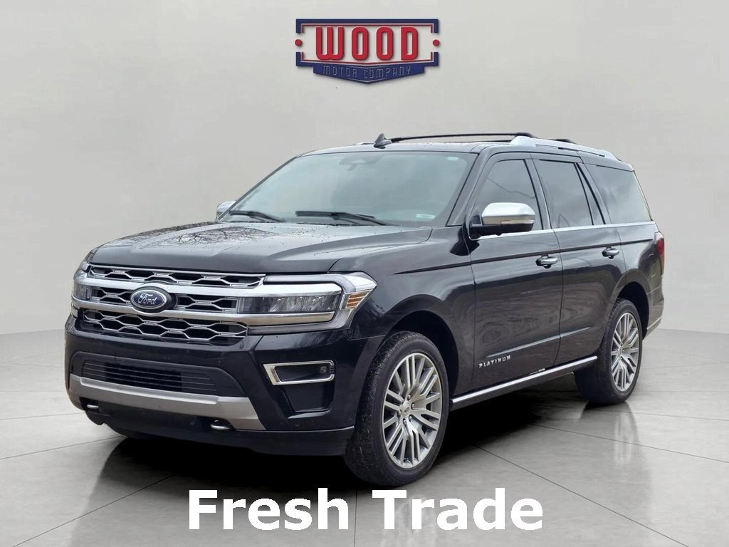 CARFAX One-Owner. Expedition Platinum, 4D Sport Utility, EcoBoost 3.5L V6 GTDi DOHC 24V Twin Turbocharged, 10-Speed Automatic, 4WD, Agate Black Metallic, Black Onyx w/Heated & Ventilated Leather Front Captain's Chairs, 22 Speakers, 3rd row seats: split-bench, Automatic temperature control, Electronic Stability Control, Equipment Group 600A Standard Package, Exterior Parking Camera Rear, Front Bucket Seats, Front dual zone A/C, Fully automatic headlights, Heated front seats, Heated rear seats, Memory seat, Navigation system: Connected Navigation, Pedal memory, Power driver seat, Power moonroof, Power windows, Radio: B&O Unleashed Sound System by Bang & Olufsen, Rear air conditioning, Reclining 3rd row seat, Remote keyless entry, SiriusXM w/360L, Steering wheel memory, Steering wheel mounted audio controls, SYNC 4 w/Enhanced Voice Recognition, Ventilated front seats. Agate Black Metallic 2023 Ford Expedition Platinum 4WD 10-Speed Automatic EcoBoost 3.5L V6 GTDi DOHC 24V Twin TurbochargedA solid name you can trust... Wood Motor. Recent Arrival!