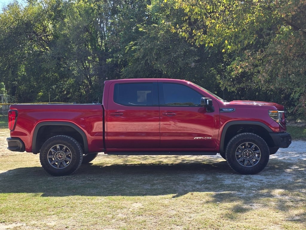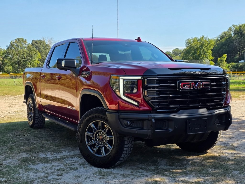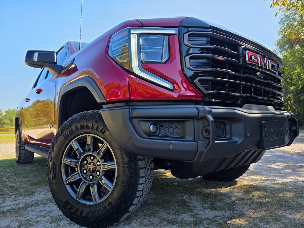 Clean CARFAX. 10-Speed Automatic, 4WD, Obsidian Rush Leather. Volcanic Red Tintcoat 2025 GMC Sierra 1500 AT4X 4WD 10-Speed Automatic EcoTec3 6.2L V8