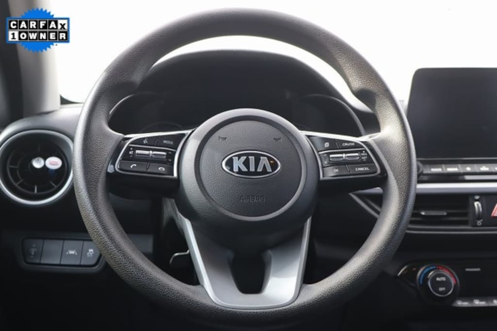 Currant Red 2019 Kia Forte LXS FWD CVT 2.0L I4 DOHC Dual CVVT 4 Speakers, Air Conditioning, Alloy wheels, AM/FM radio, Apple CarPlay & Android Auto, Automatic temperature control, Brake assist, Bumpers: body-color, Cargo Net, Carpeted Floor Mats, Delay-off headlights, Driver door bin, Driver vanity mirror, Electronic Stability Control, Exterior Parking Camera Rear, Front Bucket Seats, Front Center Armrest, Front dual zone A/C, Front reading lights, Fully automatic headlights, Illuminated entry, Low tire pressure warning, Overhead console, Panic alarm, Passenger door bin, Passenger vanity mirror, Power door mirrors, Power steering, Power windows, Radio data system, Radio: UVO Play AM/FM/MP3 Audio System, Rear Bumper Applique, Rear window defroster, Remote keyless entry, Security system, Speed control, Split folding rear seat, Steering wheel mounted audio controls, Tachometer, Telescoping steering wheel, Tilt steering wheel, Traction control, Trip computer, Variably intermittent wipers, Wheels: 16" x 6.5" Machine Finish Alloy, Woven Cloth Seat Trim.