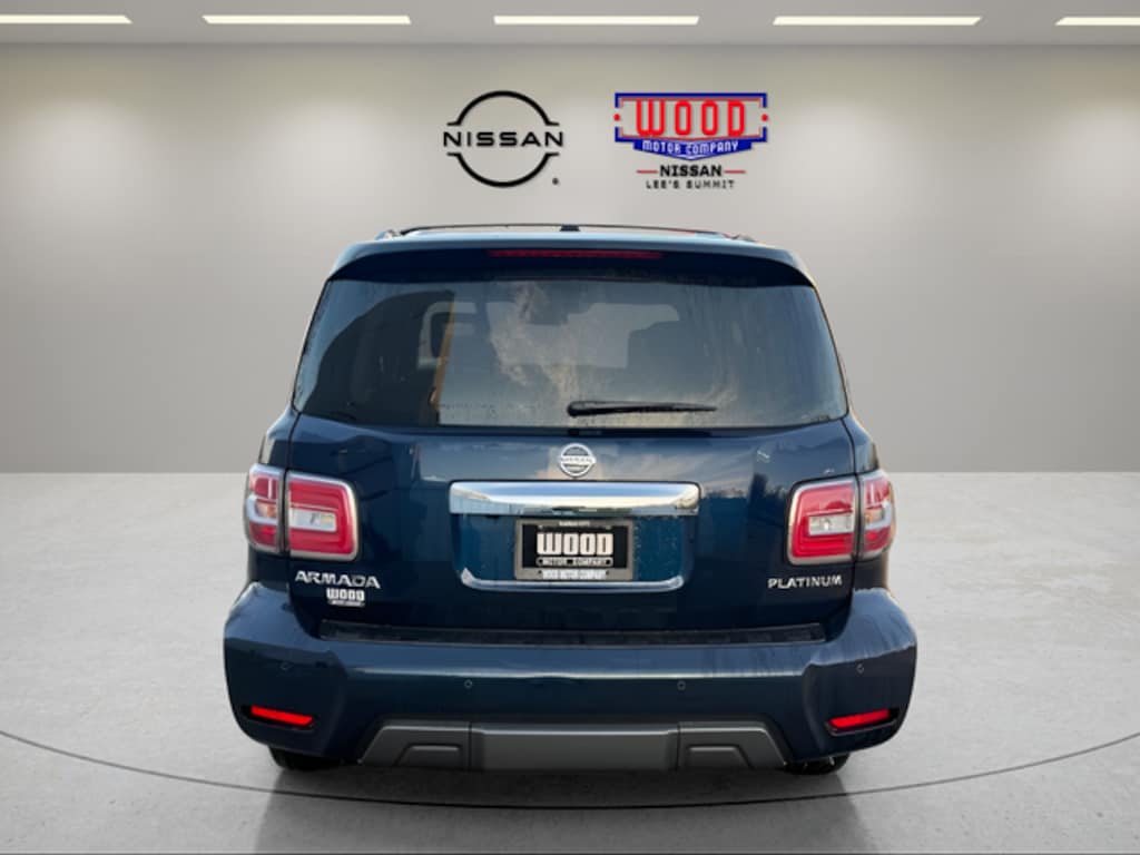 Captain's Chairs Package, Cargo Package, 2nd Row Captain's Chairs, 2nd Row Center Console w/Padded Armrest, Heated & Cooled Front Bucket Seats, Navigation System, Power Liftgate, Power moonroof, Wheels: 20" Machine-Faced w/Tinted Clear Coat. Hermosa Blue Pearl 2020 Nissan Armada Platinum RWD 7-Speed Automatic 5.6L V8