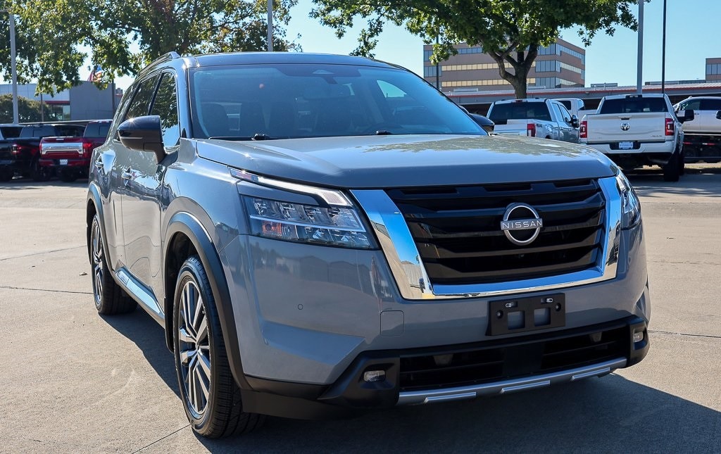 ORIGINAL MSRP: $49,545... LEATHER & LOADED!!! GREAT PAYMENT!!!, 13 Speakers, Auto High-beam Headlights, Bose Premium Audio System, Brake assist, Captain's Chairs Carpeted Floor Mats (Set of 4), Cargo Area Protector, Cargo Net, Cargo Package, First Aid Kit, Front dual zone A/C, Heads-Up Display, Heated steering wheel, Illuminated entry, Memory seat, Navigation system: NissanConnect Navigation, Power driver seat, Power Liftgate, Power moonroof, Rear air conditioning, Remote keyless entry, Speed control, Wheels: 20" Alloy w/Unique Finish. Solid Gray/Super Black 2022 Nissan Pathfinder Platinum FWD 9-Speed Automatic V6
