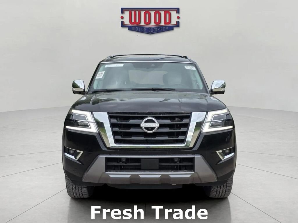 CARFAX One-Owner. Clean CARFAX. Armada Platinum, 4D Sport Utility, 5.6L V8 DOHC 32V LEV3-ULEV125 400hp, 4WD, Super Black, Almond w/Quilted Leather Seat Trim, 13 Speakers, 2nd Row Captain's Chairs, 2nd Row Center Console w/Padded Armrest, 3rd row seats: split-bench, Automatic temperature control, Captain's Chairs Package, Cargo Package, Electronic Stability Control, Exterior Parking Camera Rear, Front Bucket Seats, Front dual zone A/C, Fully automatic headlights, Heated front seats, Heated rear seats, Memory seat, Navigation System, Power driver seat, Power Liftgate, Power moonroof, Power windows, Quilted Leather Seat Trim, Radio: NissanConnect w/SiriusXM, Rear air conditioning, Reclining 3rd row seat, Remote keyless entry, Split folding rear seat, Steering wheel memory, Steering wheel mounted audio controls, Traction control, Ventilated front seats, Wheels: 22 x 8J Machine-Faced w/Tinted Clear Coat. Super Black 2024 Nissan Armada Platinum 4WD 7-Speed Automatic 5.6L V8 DOHC 32V LEV3-ULEV125 400hpA solid name you can trust... Wood Motor. Recent Arrival! Odometer is 2864 miles below market average!