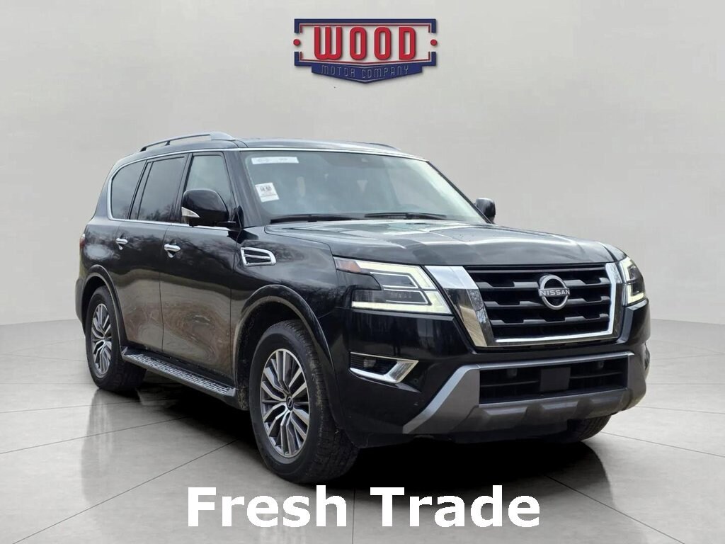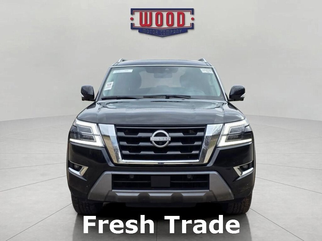 CARFAX One-Owner. Clean CARFAX. Armada SL, 4D Sport Utility, 5.6L V8 DOHC 32V LEV3-ULEV125 400hp, 4WD, Super Black, Charcoal w/Leather-Appointed Seat Trim, 13 Speakers, 3rd row seats: split-bench, AM/FM radio: SiriusXM, Automatic temperature control, Electronic Stability Control, Exterior Parking Camera Rear, Front Bucket Seats, Front dual zone A/C, Fully automatic headlights, Heated Front Bucket Seats, Heated front seats, Heated steering wheel, HVAC memory, Leather-Appointed Seat Trim, Memory seat, Navigation System, Power driver seat, Power Liftgate, Power moonroof, Power passenger seat, Power windows, Radio: NissanConnect w/SiriusXM, Rear air conditioning, Reclining 3rd row seat, Remote keyless entry, Security system, Speed control, Split folding rear seat, Steering wheel memory, Steering wheel mounted audio controls, Telescoping steering wheel, Tilt steering wheel, Traction control, Variably intermittent wipers, Wheels: 20 x 8J Painted Alloy. Super Black 2024 Nissan Armada SL 4WD 7-Speed Automatic 5.6L V8 DOHC 32V LEV3-ULEV125 400hpA solid name you can trust... Wood Motor. Recent Arrival! Odometer is 3771 miles below market average!