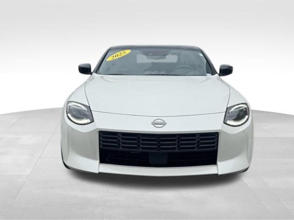 6 Speakers, AM/FM radio: SiriusXM, Anti-whiplash front head restraints, Apple CarPlay/Android Auto, Automatic temperature control, Blind Spot Warning, Brake assist, Dual front impact airbags, Dual front side impact airbags, Electronic Stability Control, Front anti-roll bar, Fully automatic headlights, Occupant sensing airbag, Overhead airbag, Radio: Nissan Audio w/6 Speakers, Rear anti-roll bar, Wheels: 18" x 9" Styled Alloy. Pearl White Tricoat/Super Black 2025 Nissan Z Sport RWD 6-Speed Manual 3.0L V6
