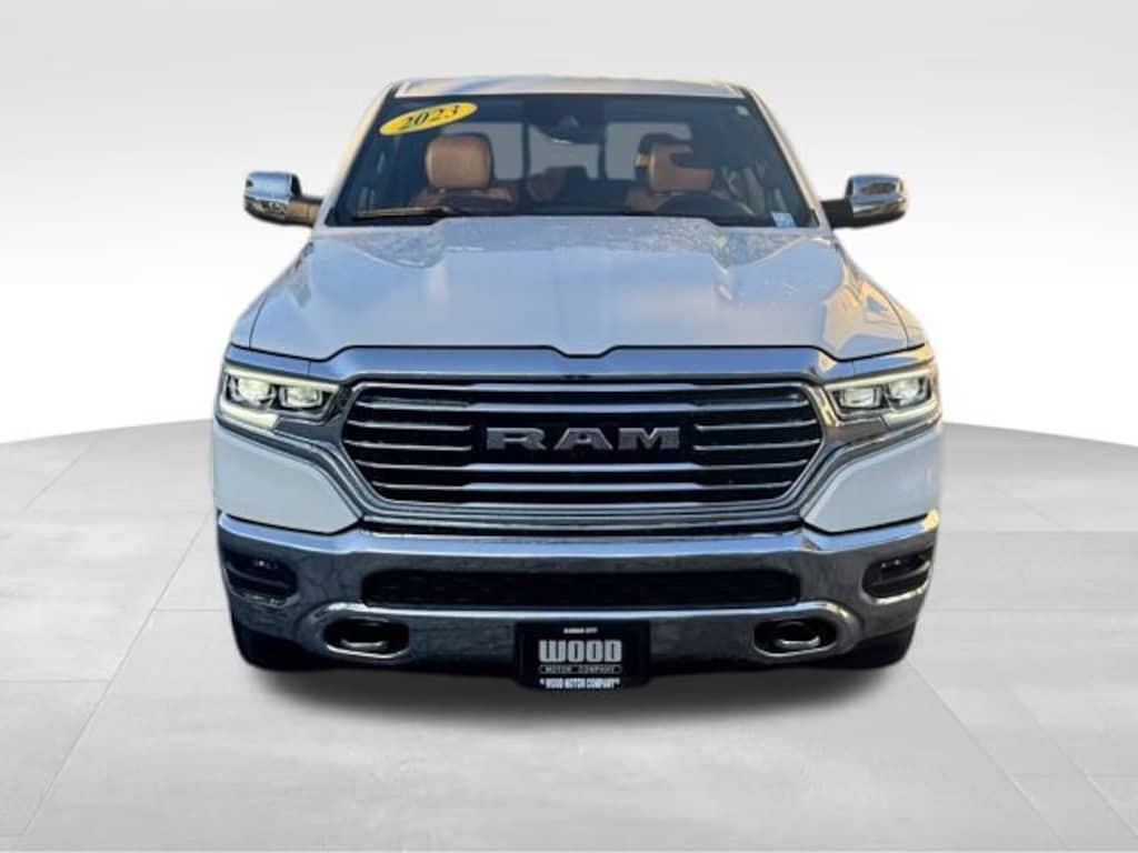 10 Speakers, 3.21 Rear Axle Ratio, Adjustable pedals, Apple CarPlay/Android Auto, Driver Seat Memory, Exterior Mirrors w/Memory, Heated Second Row Seats, Heated steering wheel, Memory seat, Navigation System, Pedal memory, Power driver seat, Quick Order Package 27K Longhorn, Trailer Brake Control, Wheels: 20" x 9" Aluminum Painted/Polished. Bright White Clearcoat 2023 Ram 1500 Laramie Longhorn 4WD 8-Speed Automatic HEMI 5.7L V8 Multi Displacement VVT eTorque