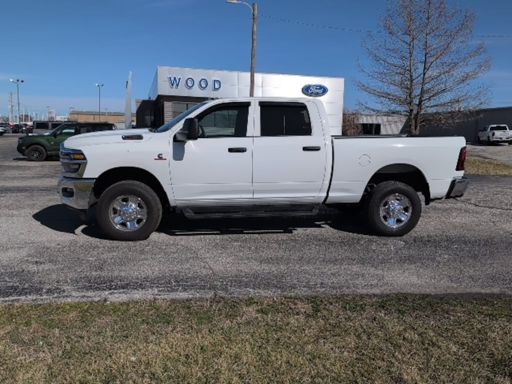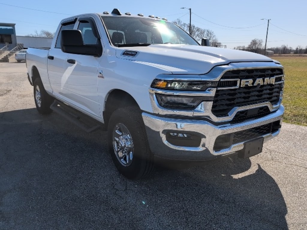 Bright White Clearcoat 2025 Ram 2500 Tradesman 4WD 8-Speed Automatic 6.7L I6 4 Way Front Headrests, 40/20/40 Split Bench Seat, 4G LTE Wi-Fi Hot Spot, 5th Wheel/Gooseneck Towing Prep Group, Apple CarPlay, Apple CarPlay/Android Auto, Black Exterior Mirrors, Brake assist, Bright Front Bumper, Bright Rear Bumper, Center Hub, Chrome Appearance Group, Chrome Grille Surround, Clearance Lamps, Compass, Connectivity - US/Canada, Delay-off headlights, Driver door bin, Electronic Stability Control, Front Center Armrest w/Storage, Front fog lights, Front License Plate Bracket, Front reading lights, Fully automatic headlights, Global Telematics Box Module (TBM), Google Android Auto, Illuminated entry, Integrated Voice Command w/Bluetooth, Low tire pressure warning, Manual Folding Exterior Mirrors, Manual Telescoping Mirrors, Matte Black Mesh Grille w/Chrome, Outside temperature display, Overhead console, Panic alarm, ParkView Rear Back-Up Camera, Passenger door bin, Passenger vanity mirror, Power steering, Power windows, Quick Order Package 24A Tradesman, Rear Folding Seat, Rear step bumper, Remote keyless entry, Remote USB Port - Charge Only, Selectable Tire Fill Alert, SiriusXM Radio Service, Speed control, Storage Tray, Tachometer, Tilt steering wheel, Variably intermittent wipers, Voltmeter, Wheels: 18" x 8.0" Steel Chrome Clad.