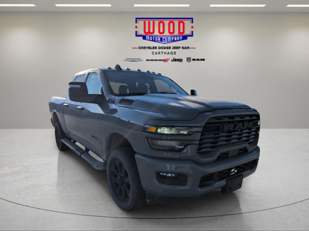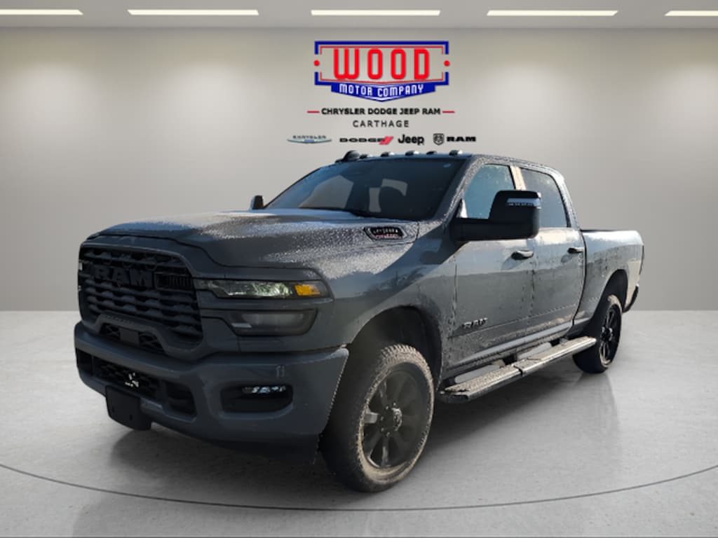 Ceramic Gray Clearcoat 2026 Ram 2500 Big Horn 4WD 8-Speed Automatic 6.4L V8 12" Touchscreen Display, 2 Way Rear Headrest Seat, 2nd Row in Floor Storage Bins, 3.73 Axle Ratio, 4 Way Front Headrests, 40/20/40 Split Bench Seat, 4G LTE Wi-Fi Hot Spot, 5th Wheel/Gooseneck Towing Prep Group, 9 Alpine Speakers with Subwoofer, Air Conditioning ATC with Dual Zone Control, Alexa Built-in, Anti-Spin Differential Rear Axle, Apple CarPlay, Apple CarPlay/Android Auto, Auto Power-Folding Mirrors, Auto-Dimming Rear-View Mirror, Big Horn Level 1 Plus Equipment Group, Black Exterior Mirrors, Black Exterior Truck Badging, Black Interior Accents, Black Wheel Center Hub, Body Color Grille-Surround, Brake assist, Bumpers: chrome, Clearance Lamps, Compass, Connected Travel and Traffic Services, Connectivity - US/Canada, Delay-off headlights, Delete Deployable Bed Step, Disassociated Touchscreen Display, Dual Glove Boxes, Electronic Stability Control, Emergency Vehicle Alert System (EVAS), Exterior Mirrors Courtesy Lamps, Exterior Mirrors with Heating Element, Exterior Mirrors with Supplemental Signals, Foam Bottle Insert (door Trim Panel), Folding Flat Load Floor Storage, Footwell Courtesy Lamp, For Details, Visit DriveUconnect.com, For More Info, Call 800-643-2112, Forward and Reverse Utility Lights, Front Armrest with Cupholders, Front Center Seat Cushion Storage, Front fog lights, Front License Plate Bracket, Front Seat Back Map Pockets, Fully automatic headlights, Global Telematics Box Module, Gloss Black Nostrils/Mic Black Grille, Glove Box Lamp, Google Android Auto, GPS Antenna Input, GPS Navigation, HD Radio, Heated door mirrors, Illuminated entry, Integrated Voice Command with Bluetooth, LED Bed Lighting, Locking Lower Glove Box, Luxury Steering Wheel, Manual Adjust 4-Way Front Passenger Seat, Mirror Running Lights, MOPAR Deployable Bed Step, MOPAR Spray in Bedliner, Night Edition, Off-Road Info Pages, Outside temperature display, Overhead console, Painted Front Bumper, Painted Rear Bumper, ParkView Rear Back-Up Camera, Passenger vanity mirror, Power 2-Way Driver Lumbar Adjust, Power Adjust 8-Way Driver Seat, Power Adjust Mirrors, Power Heated Folding Telescopic Mirrors, Power Telescoping Mirrors, Power-Adjustable Convex Aux Mirrors, Premium Cloth 40/20/40 Bench Seat, Quick Order Package 2UZ Big Horn, Radio: Uconnect 5 Navigation with 12.0" Display, Rear 60/40 Folding Seat, Rear Dome with on/Off Switch Lamp, Remote Start System, Remote USB Port - Charge Only, Selectable Tire Fill Alert, SiriusXM Radio Service, SiriusXM with 360L, Speed control, Steering Wheel Mounted Audio Controls, Storage Tray, Tachometer, Tilt steering wheel, Trailer Tow Pages, Trip computer, Variably intermittent wipers, Voltmeter, Wheels: 20" x 8.0" Black Painted Aluminum.